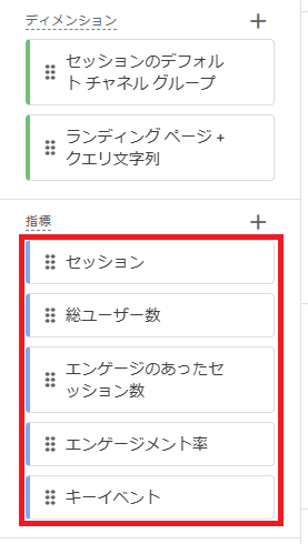 「ランディングページ+クエリ文字列」を設定エリアの「行」に追加します。