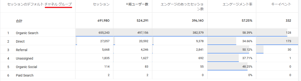 上の画像の通り,チャネルグループごとのレポートが表示されます。ディメンションは1つだけの1軸です。