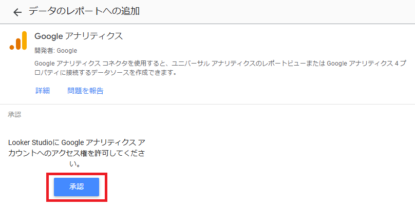 アクセス権の許可が必要です。「承認」をクリックしてください。次の画面へ遷移します。