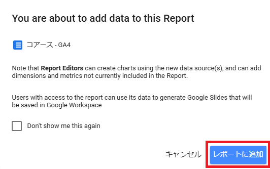 確認画面が表示されるので,「レポートに追加」をクリックします。