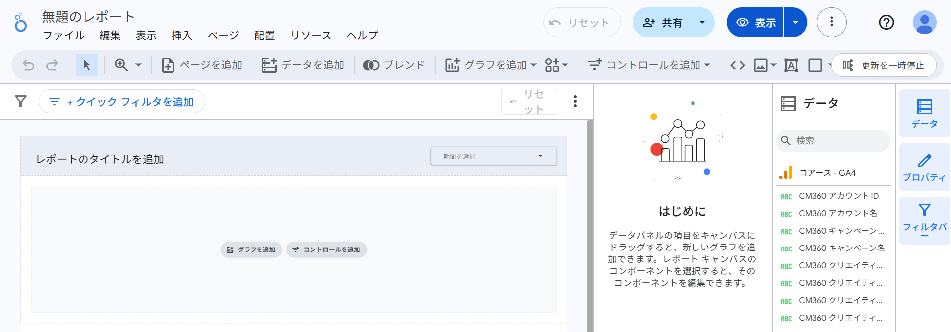 「データのレポートへの追加」から「Googleアナリティクス」を選択してください。
