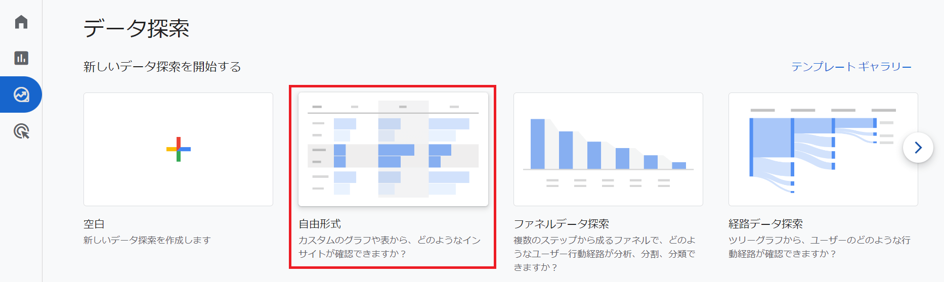 最初は「自由形式」でやってみます。テンプレートギャラリーから選択します。