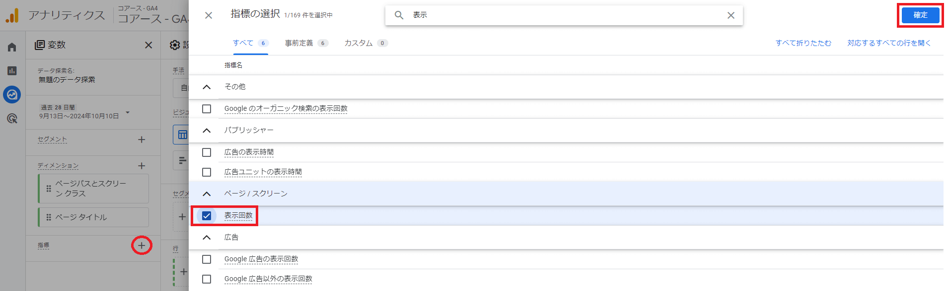 「表示回数」を選択して「確定」しておきましょう。