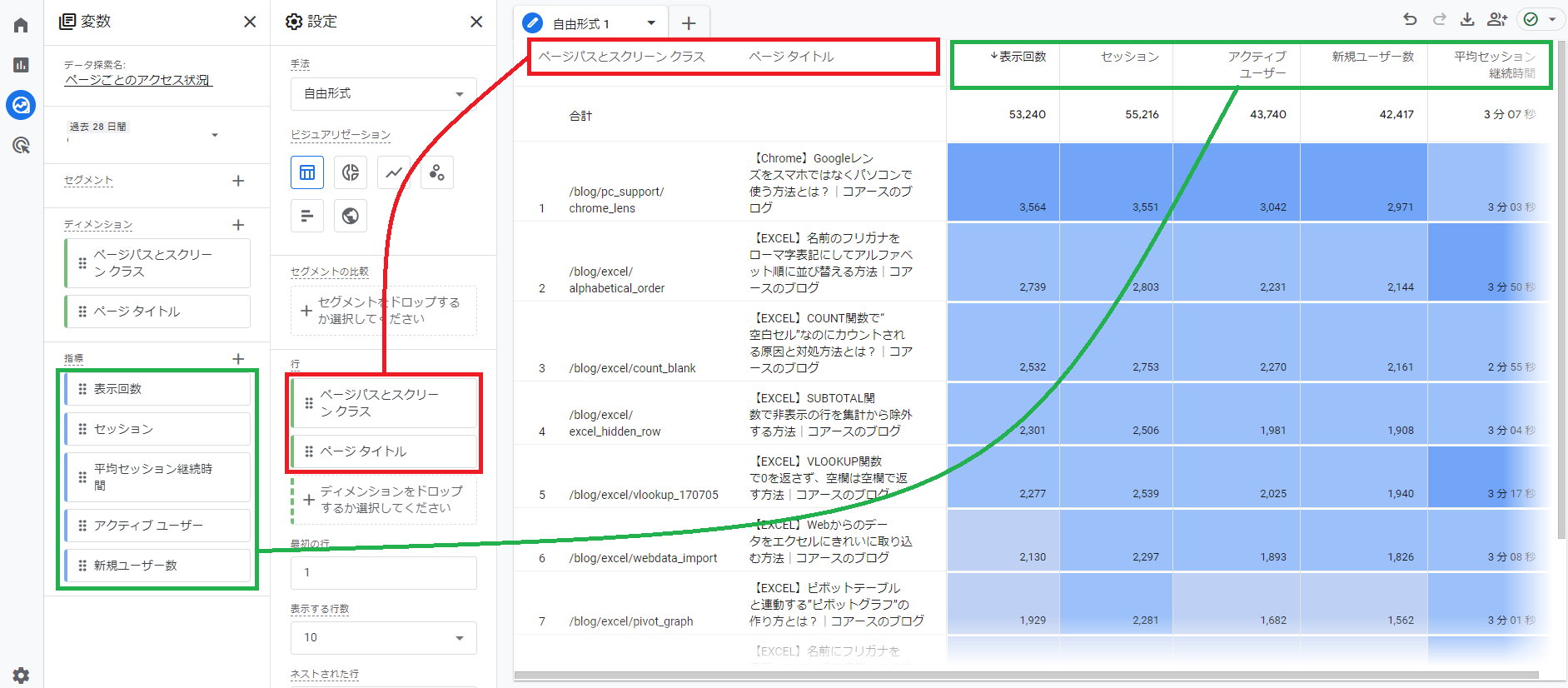 GA4の「探索」レポートの使い方を解説するシリーズ記事,2回目は「自由形式」のテンプレート使ってユーザーやページ情報を確認する方法をかんたん解説します。