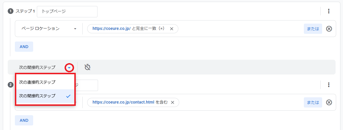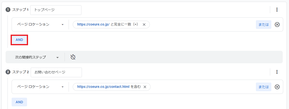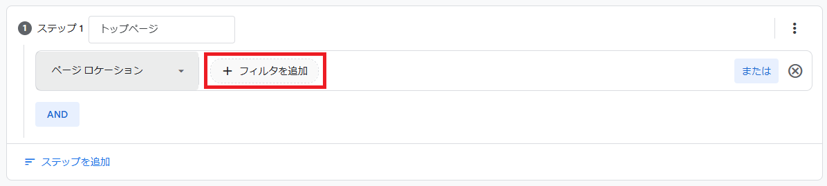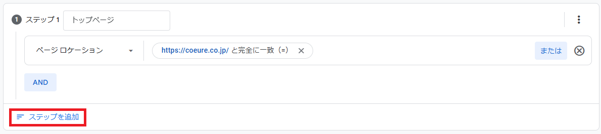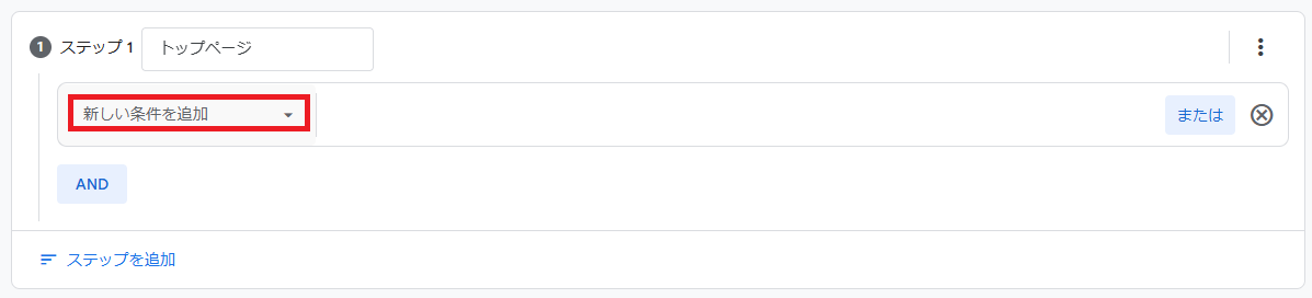 ステップ1に条件を追加することも可能です。すでに設定した条件「かつ」~という条件です。ステップ1の下部にある「AND」をクリックします。