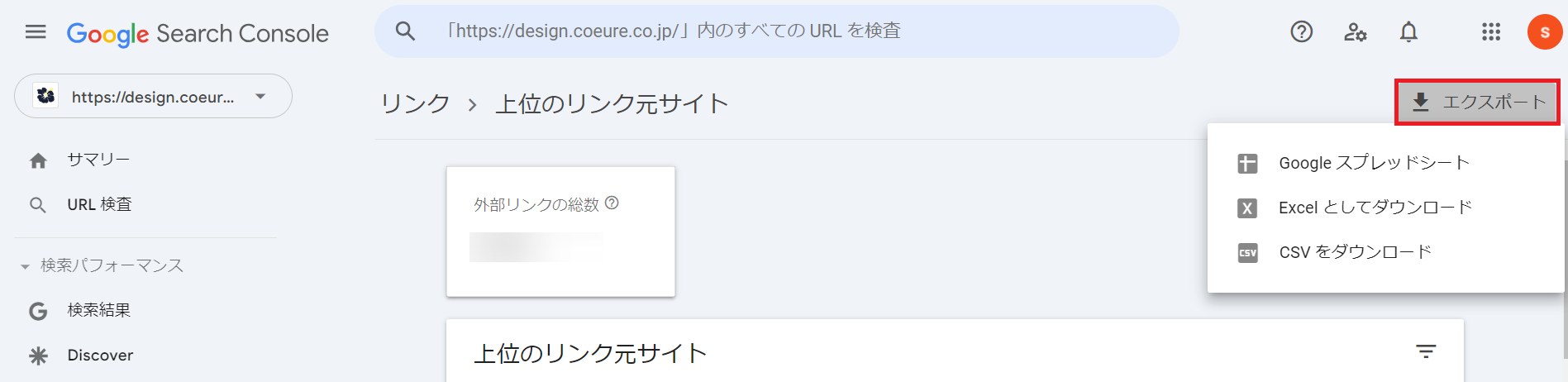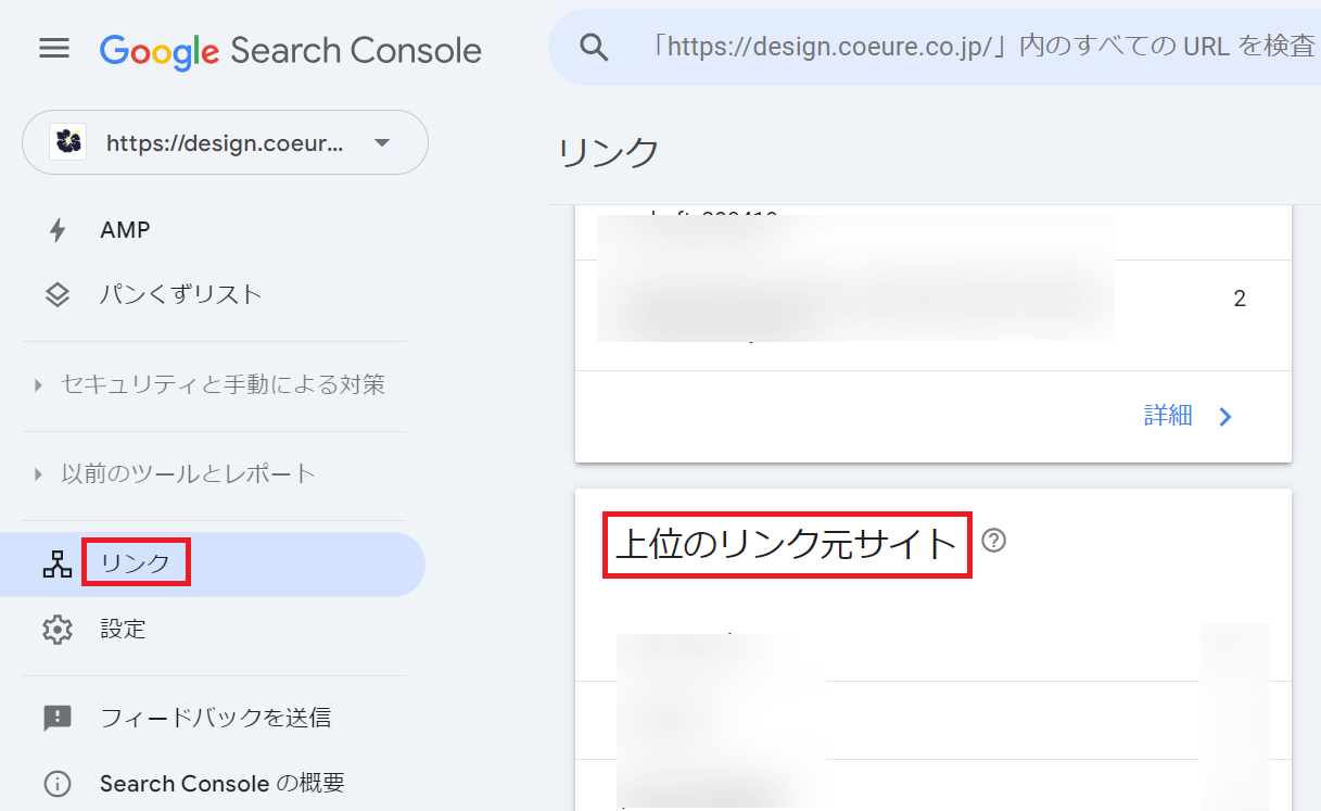 サーチコンソールのメニューから,リンク>上位のリンク元サイト にある「詳細」をクリックします。