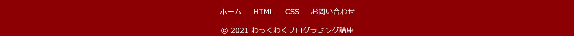 今回は「© 2021 わっくわくプログラミング講座」と記載しました。コーポレートサイトであれば、会社名(法人名)を記載します。発行年から現在までを表記するために「2018-2021」のように記載することもできます。