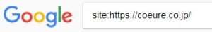 たとえば、coeure.co.jpというドメイン内でインデックス登録されているページを確認するためには、「site:coeure.co.jp」と入力して検索することができます。下図のような感じです。