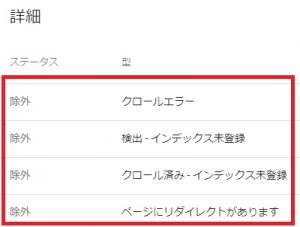 さらに「詳細」欄を見ると、具体的な除外の理由を確認することができます。