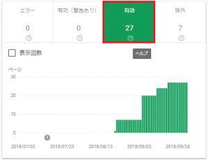 次に、「有効」をクリックすると、インデックス登録されているページについて調べることができます。
