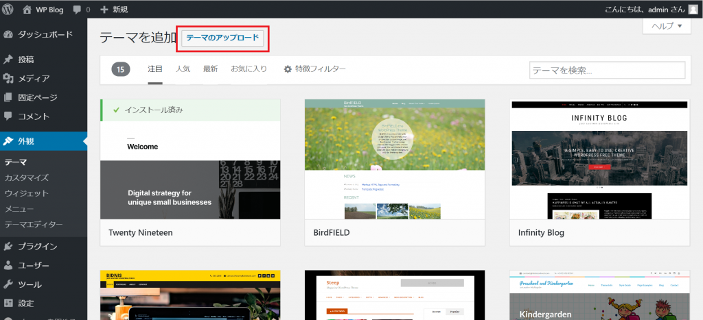 テーマのアップロード