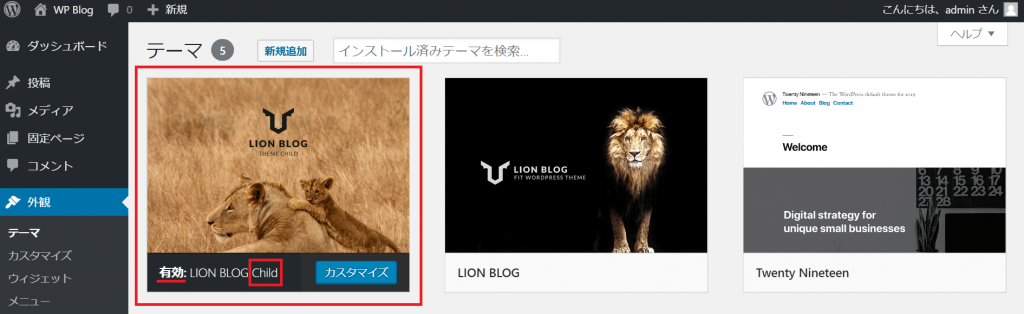 カスタマイズしていく場合は、子テーマもインストールし有効化して使用します。