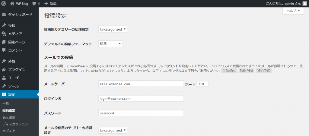 WordPressからのメールやブログのコメントが届くアドレスです。すぐに確認ができるアドレスにしておきましょう。