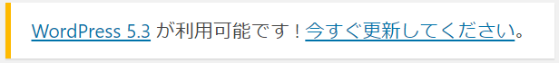 WordPress本体(コア)のバージョンアップが行われると、ダッシュボードの一番上に「今すぐ更新してください」という通知が現れます。