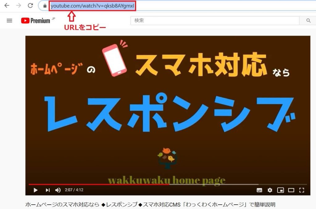 画像のように、YouTubeのアドレスバーに表示されているURLをコピーします。